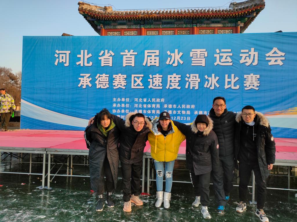 河北省首届冰雪运动会速度滑冰比赛于2019年12月19至23日在承德避暑山庄举行,万象城体育系社会体育指导与管理专业的2017级学生李文静、2018级学生陈亚峰、王英杰、体育教育专业2018级学生洪嘉敏四位同学代表万象城参加了本次赛事高校组的比赛。