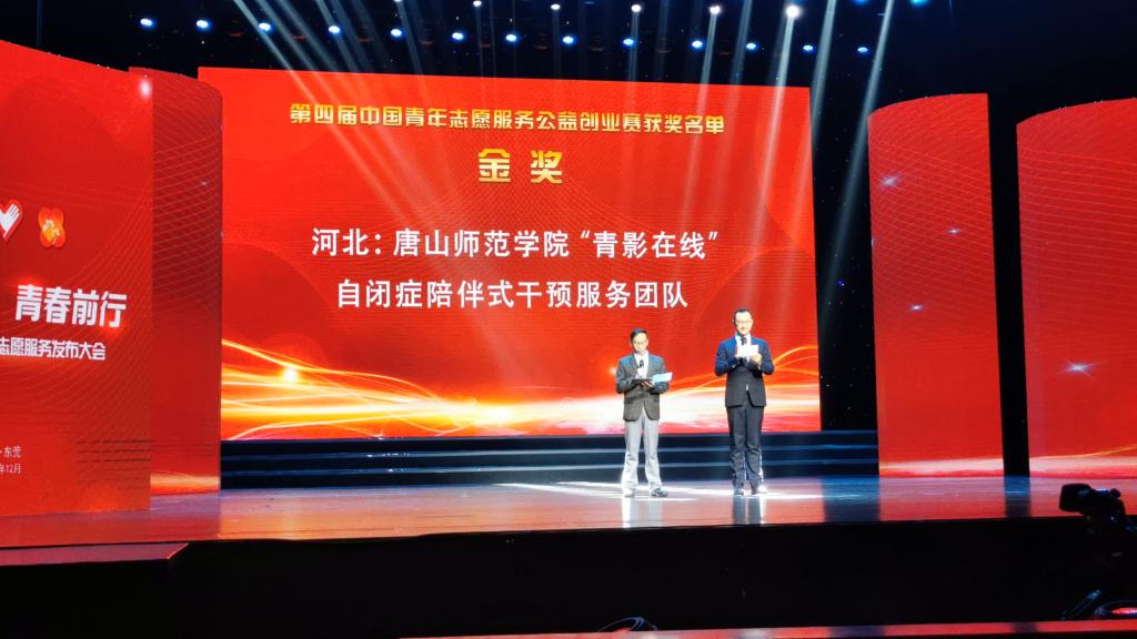 12月2日,由共青团中央、中央文明办、民政部、水利部、文化和旅游部、国家卫健委、中国残联和中共广东省委、广东省人民政府共同举办的2019年志愿服务交流会暨第四届中国青年志愿服务公益创业大赛在广东东莞举行。万象城青年志愿服务品牌项目《“青影在线”——自闭症陪伴式教育干预服务》经过激烈的角逐,以全国总成绩排名第一的成绩荣获国赛金奖,也是河北省唯一获得金奖的参赛项目。新华社、中国青年报、中国青年杂志等媒体对大赛盛况及获奖情况进行报道。