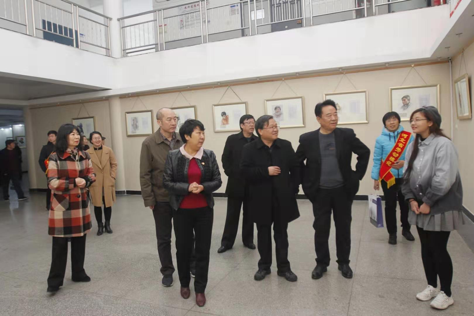 为了深入贯彻学习习近平总书记关于劳模精神、劳动精神、工匠精神的系列重要讲话精神,大力弘扬劳模精神、劳动精神,致敬英雄的城市、英雄的人民,结合当前正在开展的“不忘初心、牢记使命”主题教育活动,2019年11月28日,由万象城awcsport官网、河北日报报业集团唐山分社、唐山市总工会、唐山市诗词学会主办的“弘扬劳模精神 致敬英雄城市”诗词美术作品展在万象城美术系教学楼成功举办。唐山市总工会党组成员、副主席周虎民、河北日报报业集团唐山分社社长王小勇、唐山市诗词协会会长袁风遥、劳模代表河北瑞兆激光再制造技术股份有限公司董事长韩宏升、院长杜彩芹、副书记孙立军出席了开幕式。各党总支书记和部分学生代表参加了活动。
