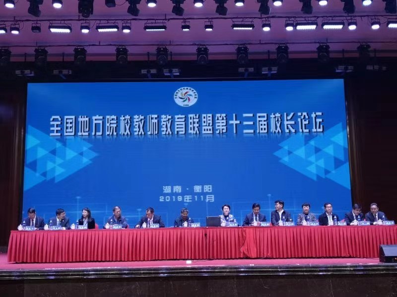 2019年11月15日至16日,全国地方院校教师教育联盟第十三届校长论坛在衡阳师范学院召开,来自全国26个省份80所院校200余人参会,论坛以“新时代教师教育振兴与教师素质提升”为主题,围绕思政课改革创新、师德师风建设、教师培养模式改革与实践、师范专业认证与教师培养等专题展开研讨。院长杜彩芹、办公室主任徐铁红、教务处处长王淑娟参加了本次论坛。