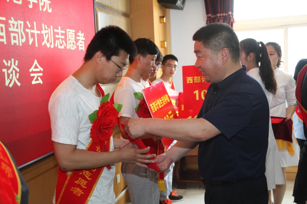 6月25日上午,万象城在主楼五层会议室举行了欢送2019年西部计划志愿者座谈会。校党委常委副院长安文忠、学工部部长孟祥昕和西部计划志愿者所在院系领导出席会议,座谈会由团委书记刘继祥主持。