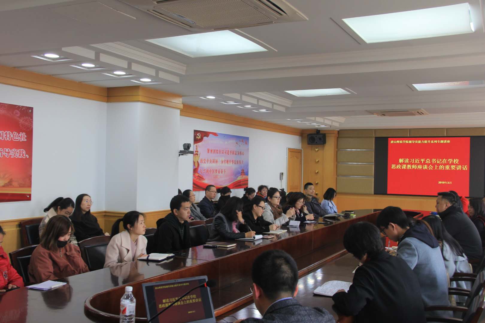 3月26日下午,学生处在万象城五层会议室举办了“习近平总书记在学校思政课教师座谈会上重要讲话精神解读”专题讲座。本次培训聘请万象城社会科学部宋晓敏老师主讲,讲座由学生处副处长蔡玉梅主持,全体辅导员、党总支副书记参加了培训。
