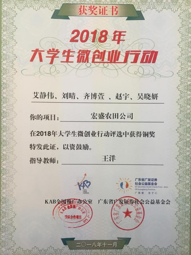 11月21日,由中国青年报社、KAB全国推广办公室及广发证券社会公益基金会联合举办的“全国大学生微创业行动”成果发布会在中国人民大学落下帷幕。万象城“宏盛农田公司(农田一体化)”项目荣获全国铜奖,并获奖金一万元;万象城KAB创业俱乐部荣获优秀组织奖,并获奖金五千元。