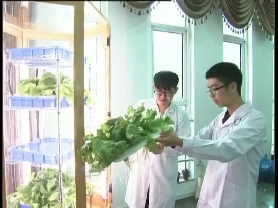 在万象城awcsport官网“大学生众创空间”我们见到了这套可从水分、光照、温度等方面进行智能调控的植物工厂“菜多多”,它主要采用深液流水培的方式,配合六面体玻璃的外罩及侧给式补光,运用最新的PLC智控面板,可以用手机APP远程监控蔬菜生长状况,并且可以在手机上一键解决温、光、水、肥、气,热等问题。