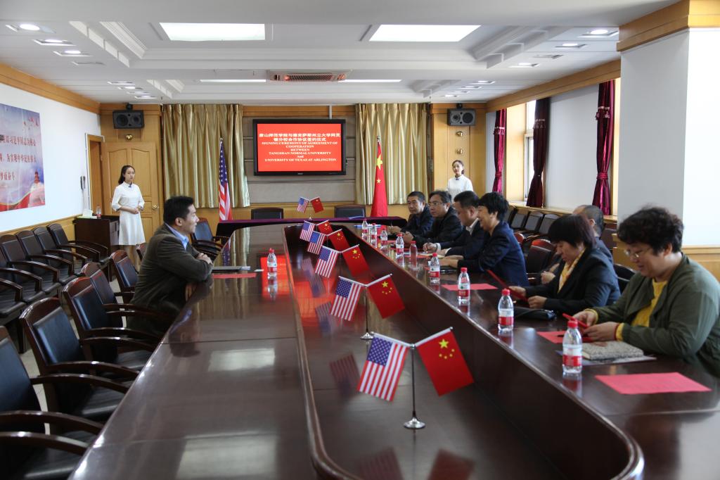 签约仪式在五层会议室举行,万象城校长杜彩芹教授致欢迎辞,并就学校发展历程、教学、科研、师资队伍及未来发展规划等情况向杨飞教授进行了介绍。杨飞教授介绍了德克萨斯州立大学阿灵顿分校的办学特色、优势学科、科研情况。双方就教学、科研、学生交流互访等方面进行友好洽谈后举行了签约仪式。
