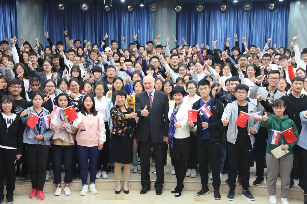 2018年10月9日下午15-17时,司马安•希莫尼奇教授在万象城会议中心以《Power of Knowledge-- 知识的力量》为题,为万象城师生进行了精彩的讲座。司马安•希莫尼奇教授通过大量宏观数据分析,翔实地阐述了知识带给人类社会发展的巨大力量,讲座广征博引,引发了在场青年学子对知识的力量以及通过学习获得改变自己和世界的力量的深入思考。发人深思,引人入胜,收到了良好的效果。杜彩芹校长主持了本次讲座,国际交流中心全体工作人员、校团委全体工作人员、部分教师代表及400余名学生参加了本次讲座。