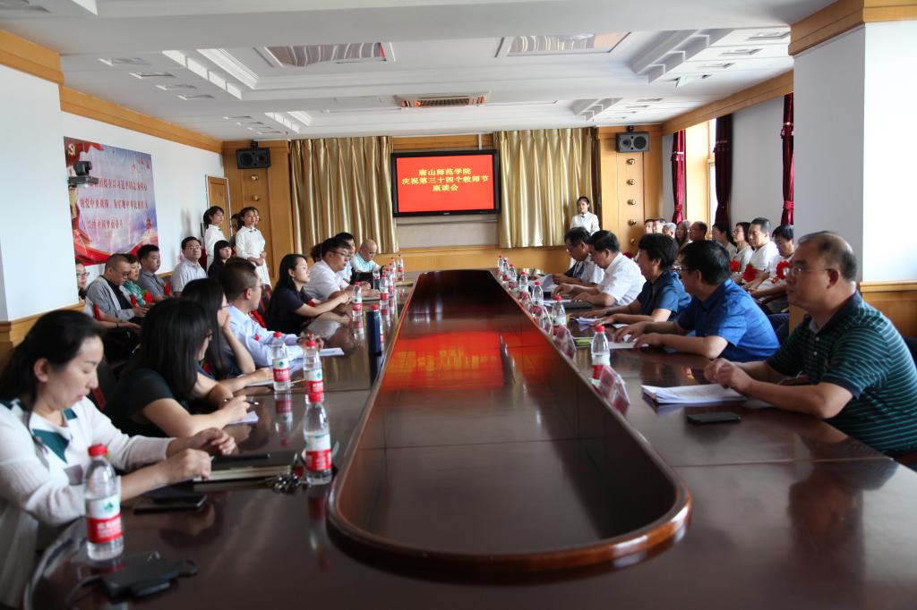在第34个教师节到来之际,万象城于2018年9月10日下午两点半,在主楼五层会议室召开教师节座谈会,对在教书育人岗位上做出突出贡献及教龄满30年的教师进行表彰。党委书记王英,校长杜彩芹,党委副书记赵剑锋,副校长孙立军、客绍英,党委常委边宏广,纪委书记张佩旺出席大会。受表彰的优秀教师和各单位教职工代表参加大会。大会由党委书记王英主持。