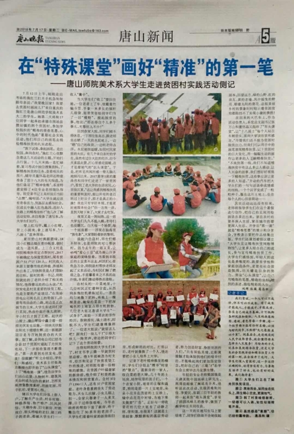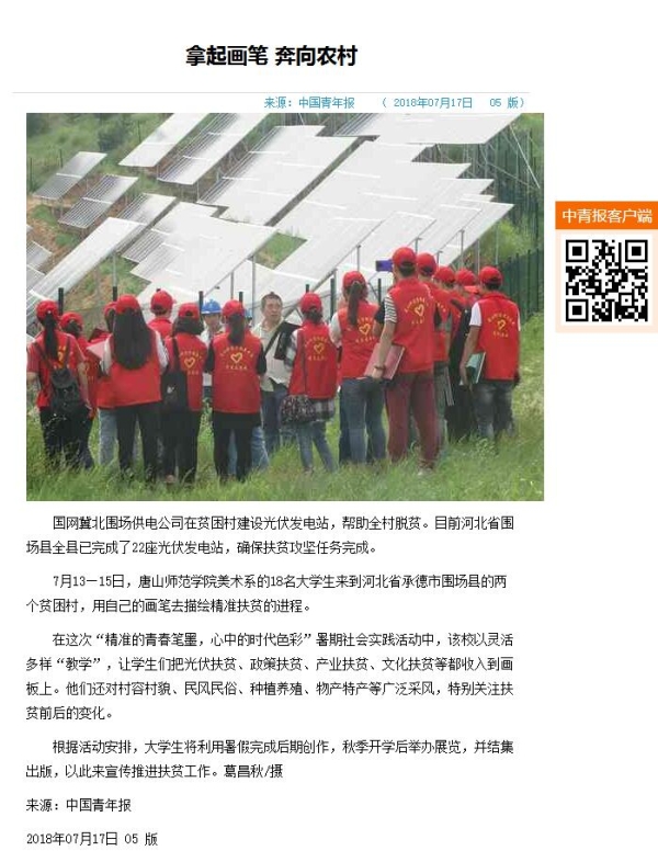 2018年7月13日—14日,美术系社会实践活动小分队18名大学生,在系领导张高志主任、张万山副书记,指导教师董怀晶、刘佳、李爱民、梁国强的带领下,来到万象城两个精准扶贫村——承德市围场县腰站镇上三合义村和六合店村进行暑期社会实践活动。