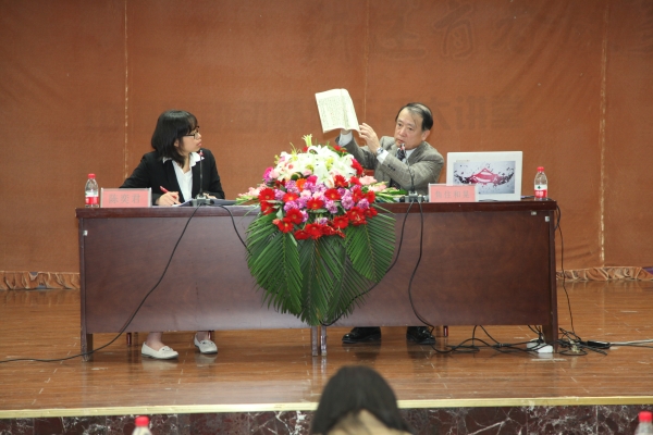 开幕式后,市泽静山教授、鱼住和晃教授分别就《张裕钊书法在日本书坛的地位》、《近代日本书法展现中的张裕钊》,结合珍贵的书法真迹和文献资料,从历史的角度分析评价张廉卿(裕钊)这一书法流派在日本的流派传承、艺术风格、书法影响和历史定位,分析论证了张裕钊书法在日本的深远影响和伟大的艺术魅力。两位日本书法家还现场回答了同学们关于日本大学中的书法教育和篆刻教育现状等问题。会后,现场的中文系、美术系同学和日本来华教授一起近距离观看了上条信山先生的多幅书法真迹。