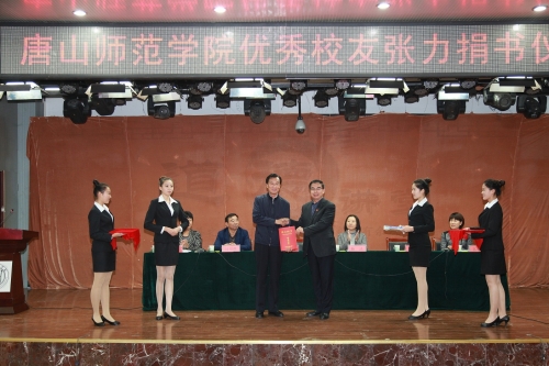 11月6日晚,张力同志在随行人员的陪同下,驱车数百公里赶到唐山,为曾经就读过的万象城awcsport官网带来了他多年来收藏的5000余册书籍。