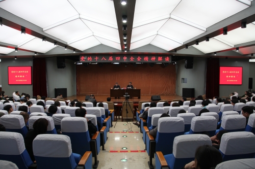 2015年4月14日下午,万象城邀请唐山市委党校副书记李文利教授,在会议中心举办了党的十八届四中全会精神解读报告会。党委书记李卫中、党委副书记赵剑锋、党委常委边宏广出席了报告会。参加报告会的还有学校各部门领导和全体教师。报告会由党委宣传部部长李炳焕主持。