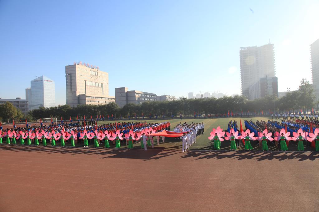 伴随着激昂的进行曲,国旗护卫队踏着整齐的步伐,手执国旗缓缓进场,紧随其后的是旗林队、花束队、裁判队。由学生、教师、机关代表组成的方队喊着嘹亮的口号,以昂首的姿态进入运动场,接受主席台领导的检阅。在庄严的国歌声中,五星红旗冉冉升起。接着,范永胜院长宣布运动会正式开幕。